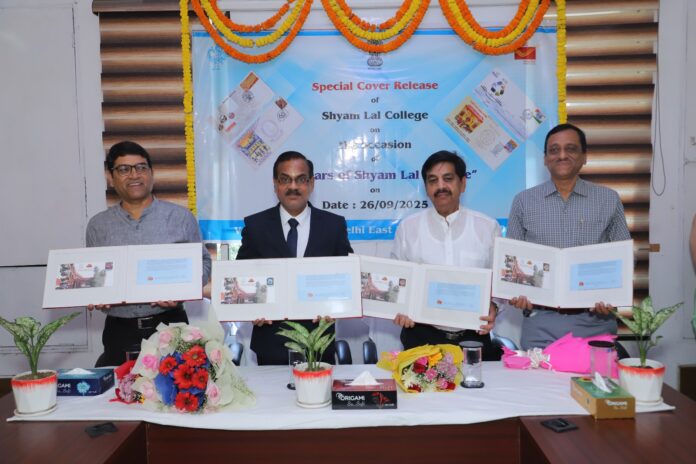 New Delhi, September 26, 2025 : A special postal cover, commemorating Sashtipoorthi of Shyam Lal College, was officially released by India Post on Friday at a gracious function held at Krishna Nagar Post Office.