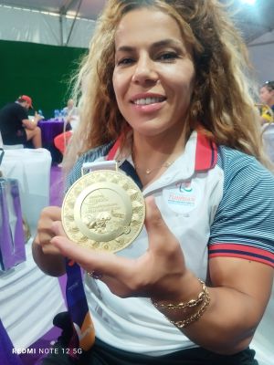 Raoua Tlili from Tunisia won Bronze in F41 shot put and Gold in Discus Throw