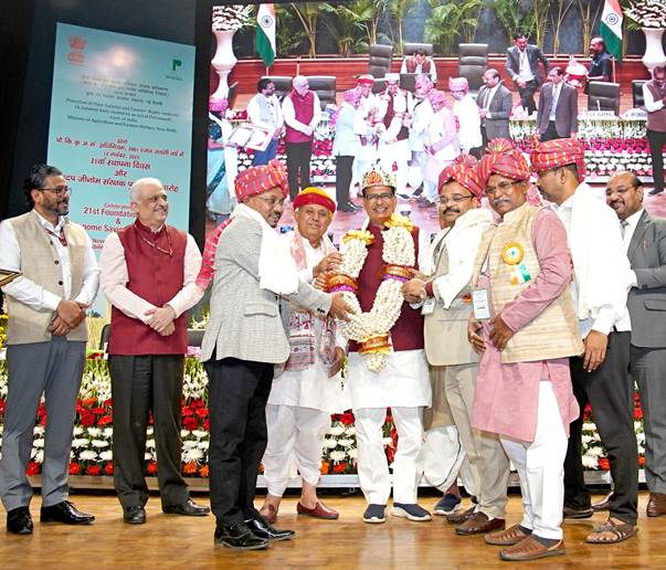 New Delhi, November 12, 2025 : Union Minister for Agriculture & Farmers’ Welfare, and Rural Development, Shri Shivraj Singh Chouhan today participated in the ‘Plant Genome Saviour Awards Ceremony’, celebrating the Silver Jubilee of the Protection of Plant Varieties and Farmers’ Rights (PPV&FRA) Act, 2001 and the 21st Foundation Day of the PPV&FRA, held at C. Subramaniam Hall, Pusa Campus, New Delhi. On this occasion, the Union Minister felicitated select farmer awardees from across the country for their outstanding contributions to seed conservation and biodiversity.