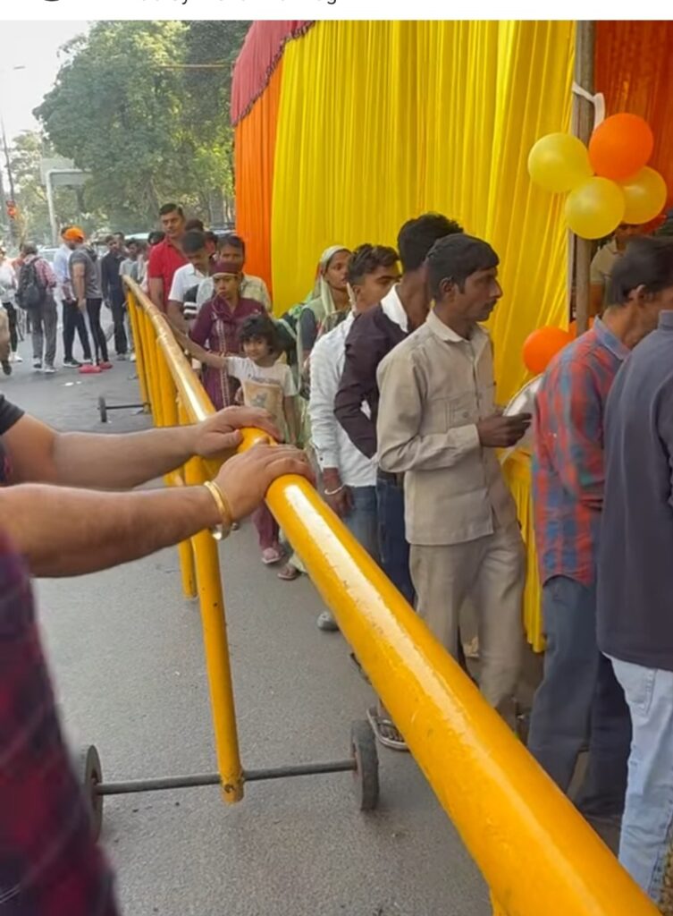 The Langar Prasad is organized, at the entrance of the mall, and it is heartwarming to see how efficiently it is managed. The management ensures that there is no disruption to the ongoing traffic, and the members and administration are themselves on duty for making this smooth and hassle-free. Another important aspect is maintenance of cleanliness around. The garbage disposal is well taken care of, and everything is left spic and span on the completion.