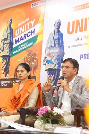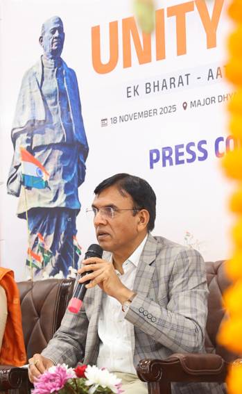Briefing the media on the progress of the ongoing district-level padyatras and outlining the key highlights of the National Padyatra at a Press Conference in New Delhi today, Dr. Mansukh Mandaviya said, “From Kashmir to Kanyakumari and Kutch to Kohima, lakhs of people have walked together for national unity. This is a celebration of the legacy of Sardar Vallabhbhai Patel, while also being a national movement to channel youth energy into nation-building, towards the goal of Viksit Bharat.”