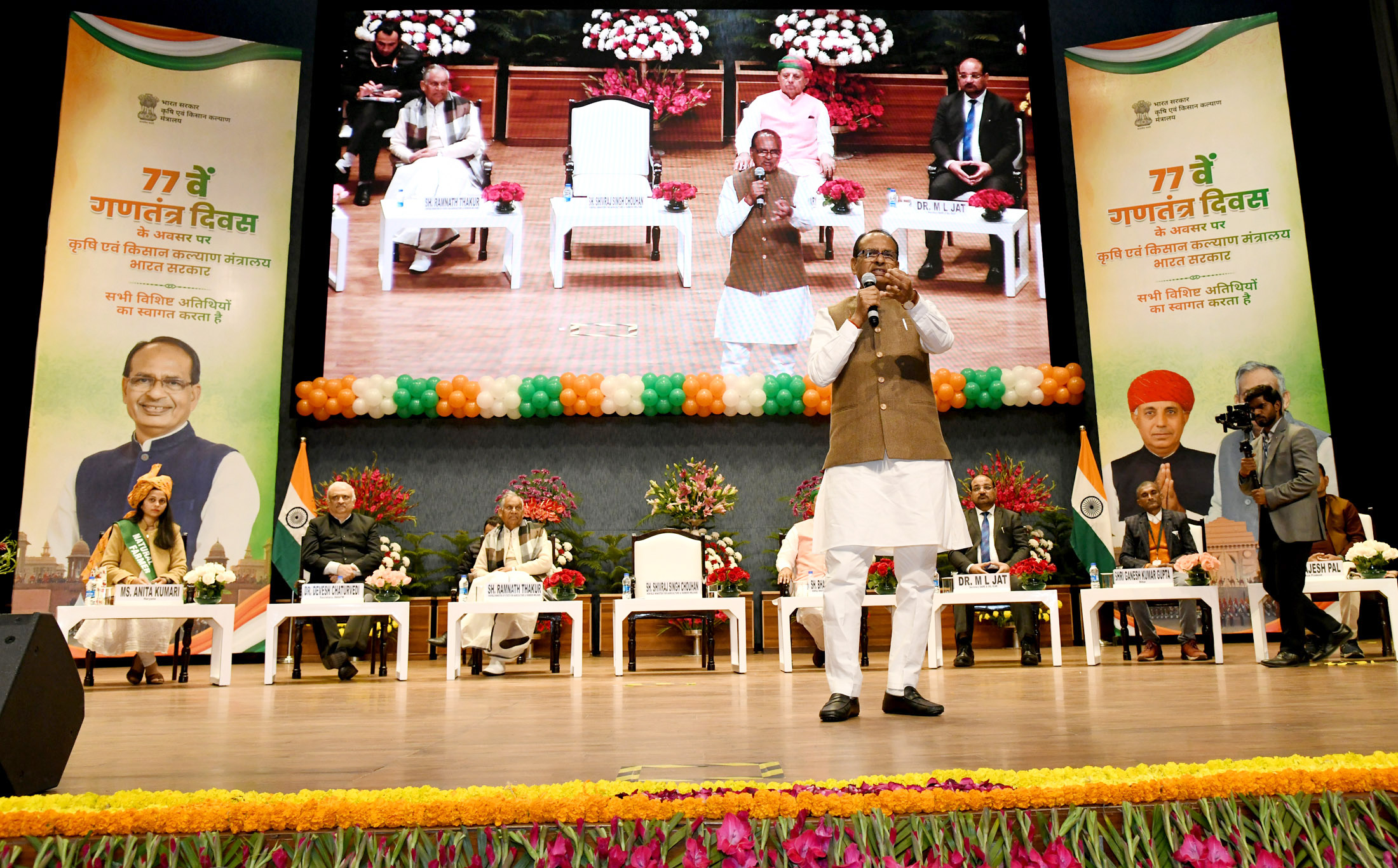 New Delhi, January 26, 2026 : On the occasion of the 77th Republic Day, the Union Minister of Agriculture and Farmers Welfare and Rural Development, Shri Shivraj Singh Chouhan interacted with the farmers from different parts of the country who participated as special guests in the parade organized at Kartavya Path in New Delhi today at the Indian Council of Agricultural Research (ICAR) in Pusa, New Delhi. Union Ministers of State for Agriculture and Farmers Welfare Shri Bhagirath Chaudhary and Shri Ramnath Thakur also participated in the program.
