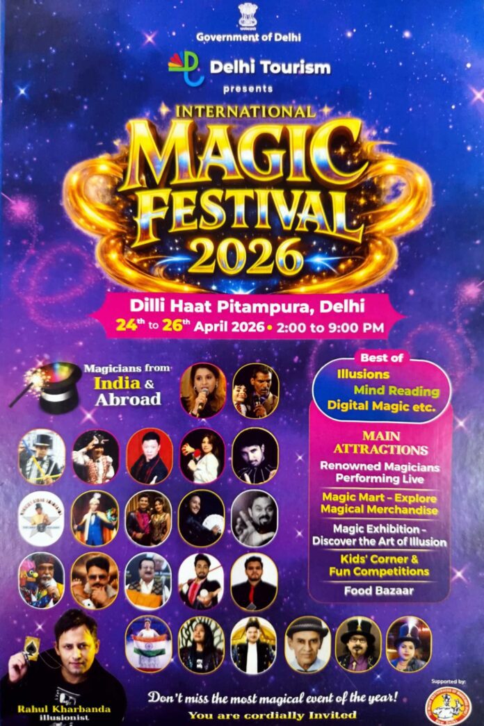 New Delhi, April 24, 2026: Delhi Tourism on behalf of GNCTD, is organizing “International Magic Festival” from 24th to 26th April, 2026 at Dilli Haat Pitam Pura, (nearest Metro Station – Netaji Subhash Place) New Delhi.